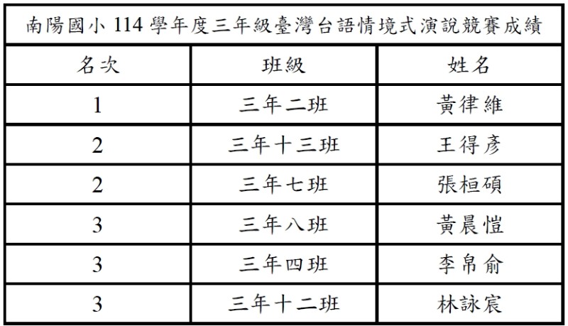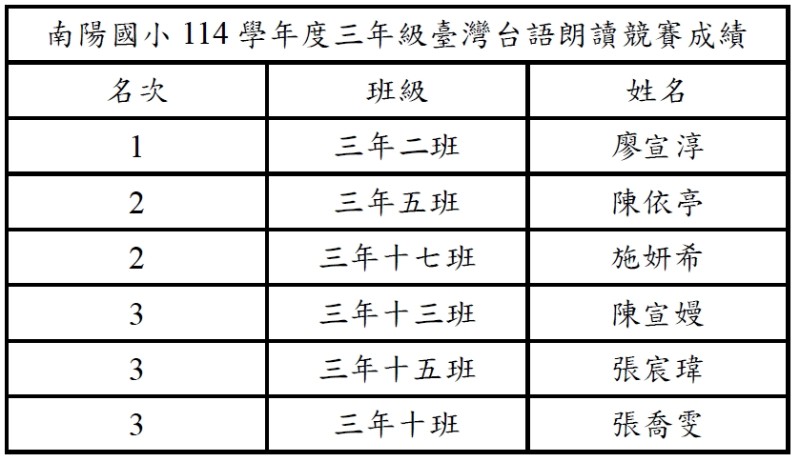 南陽國小114學年度三年級臺灣台語朗讀競賽成績.jpg