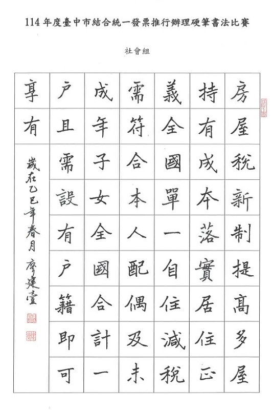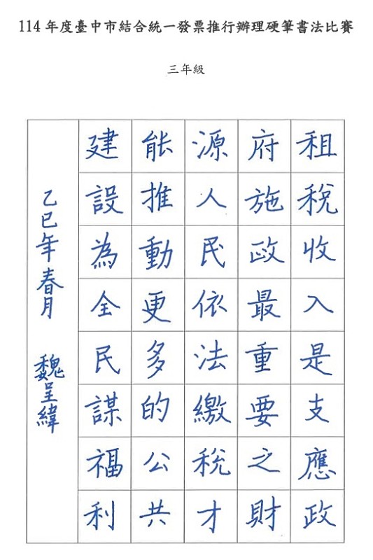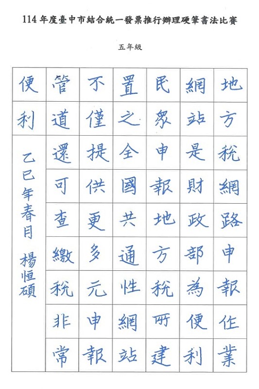 | 標題 | 恭喜本校師生參加114年度臺中市結合統一發票推行辦理硬筆書法比賽榮獲佳績。 |