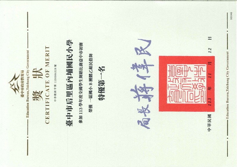 恭喜~本校舞蹈隊在113學年度全國舞蹈比賽臺中市初賽獲得優異成績