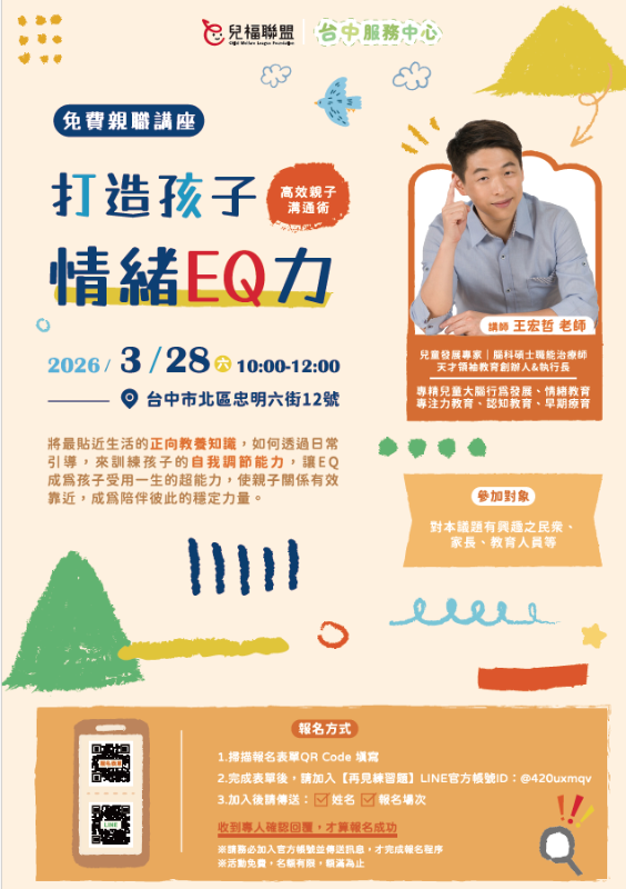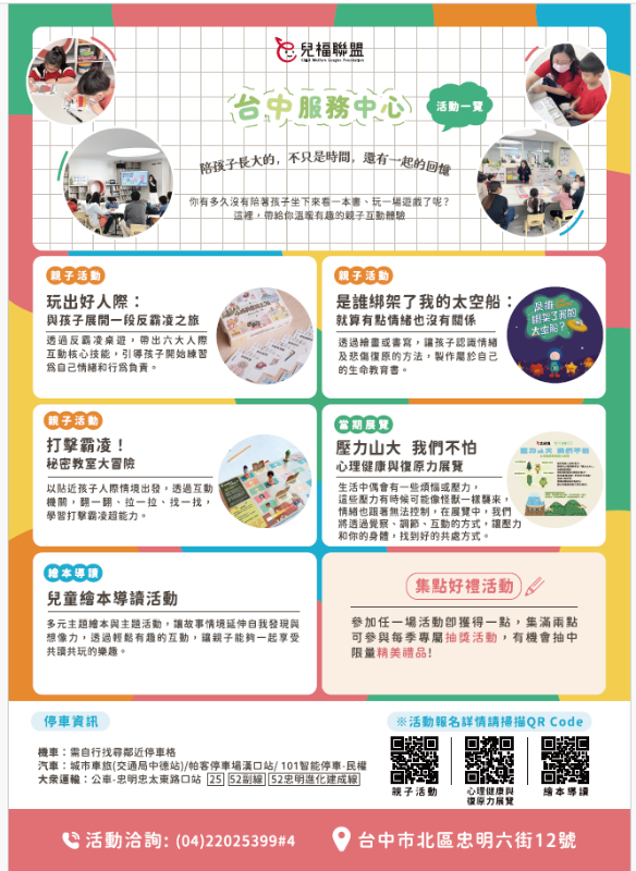 兒福聯盟台中服務中心親職講座、社區活動及兒童節活動訊息