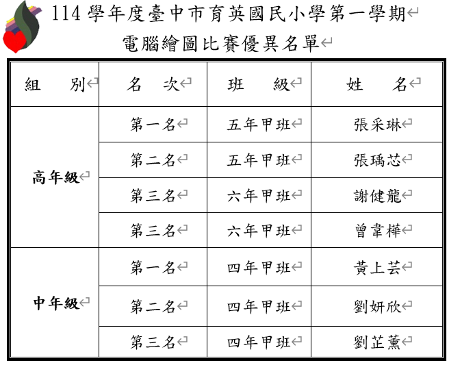 114學年度第一學期校內電腦繪圖比賽優異名單