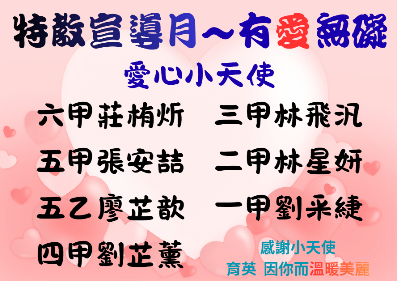 愛心小天使當選名單~~感恩有你~~有愛無礙