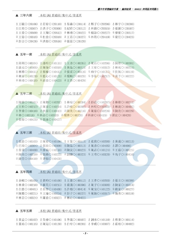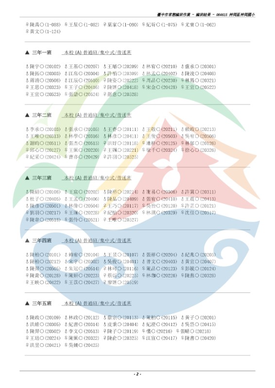 | 標題 | 110學年度一、三、五年級常態編班作業班群結果公告 (三、五年級姓名後括號內為原班級座號) |