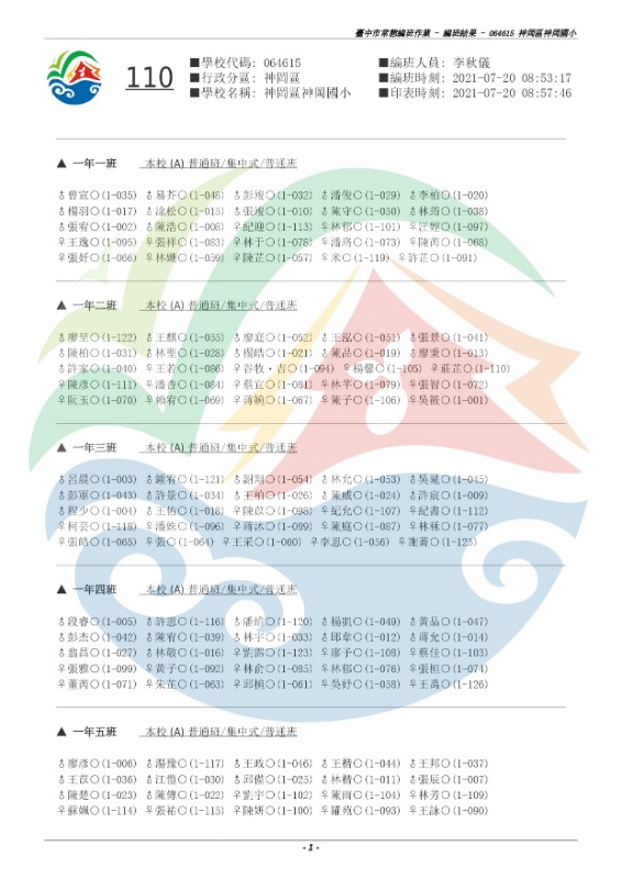 110學年度一、三、五年級常態編班作業班群結果公告