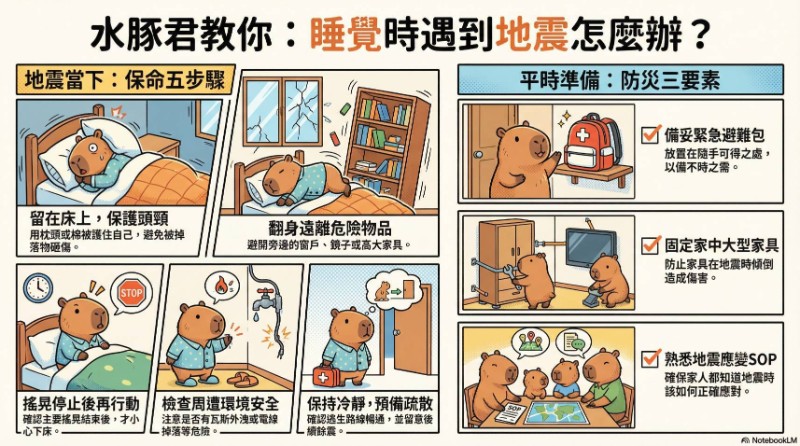 水豚君教你:睡覺時遇到地震怎麼辦?