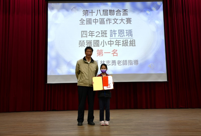 榮獲第十八屆聯合盃全國中區作文大賽 中年級組 第一名
