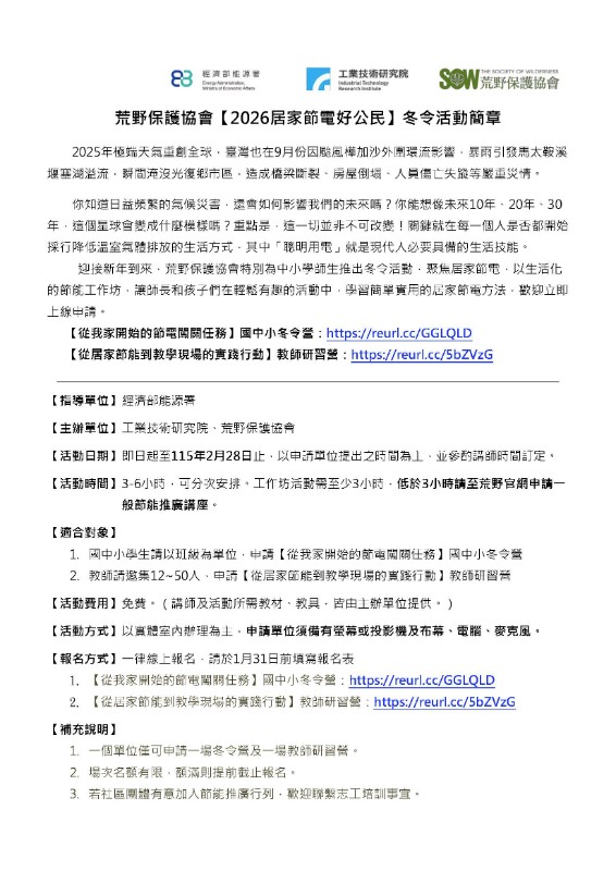 荒野保護協會【2026居家節電好公民】冬令活動簡章.pdf
