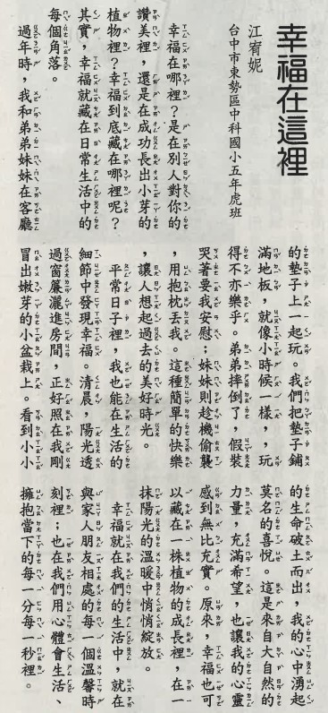 賀五甲江宥妮同學文章〈幸福在這裡〉刊登人間福報(114/6/4)