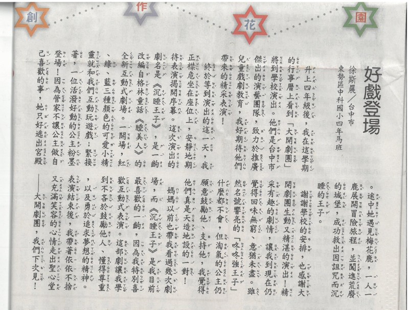 賀四甲徐斯晨同學文章〈好戲登場〉刊登人間福報(114/10/16)