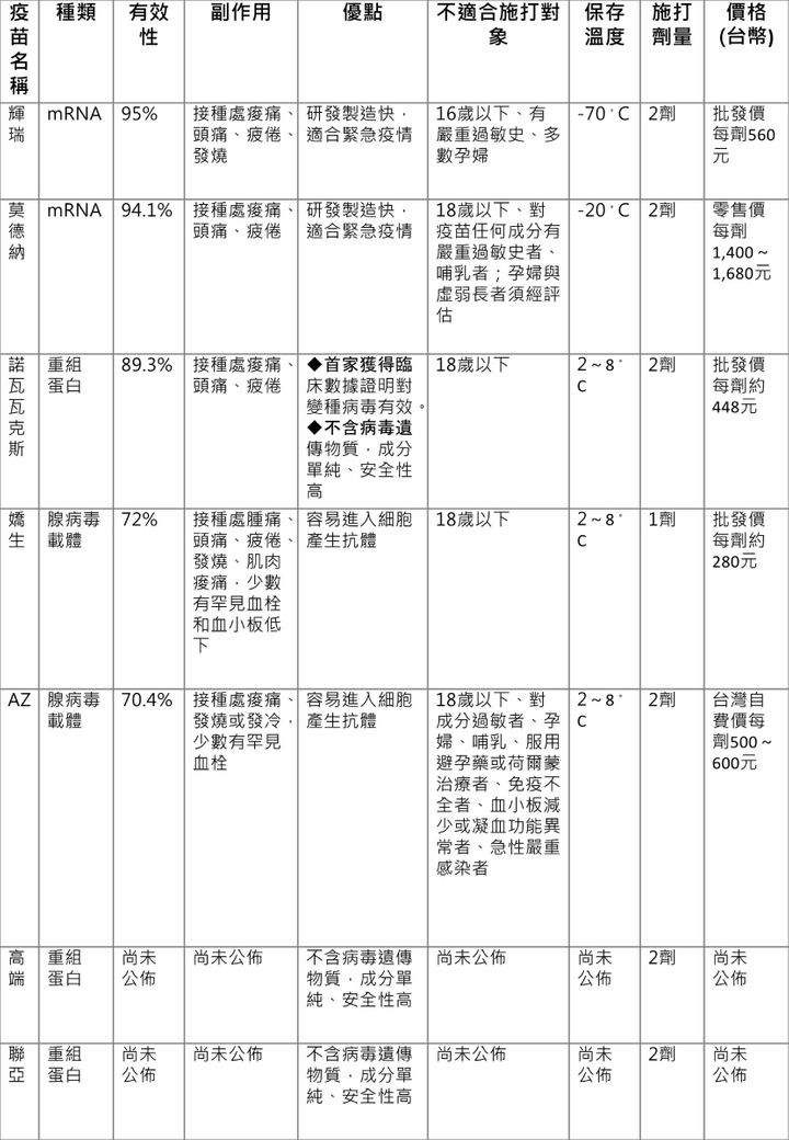 - 目前諾瓦瓦克斯、輝瑞疫苗對英國和南非變種都有效,AZ對英國變種有效,但對南非變種效力較低;莫德納對南非變種有效。