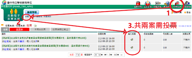 | 標題 | ★★★公告本校112學年度教師評審委員會、教師成績考核委員會改選事宜,並煩請同仁於9/4(一)上午8時~9/5(二)下午3時前至「差勤系統」進行線上投票★★★ |