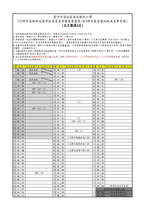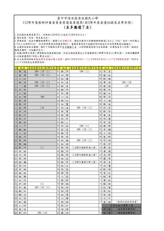 ★★★公告本校112學年度教師評審委員會、教師成績考核委員會改選事宜。★★★