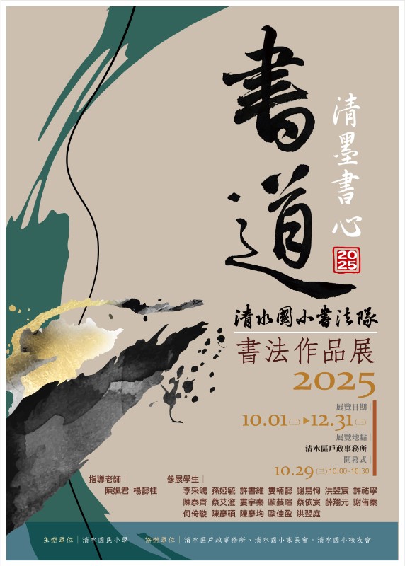| 標題 | 書道-清墨書心-清水國小書法隊書法作品展(戶政事務所參展),歡迎大家蒞臨觀展 |