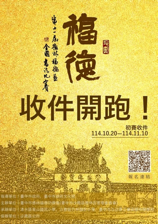 由臺中市沙鹿德林宮 主辦,一年一度的書法盛事再度登場!