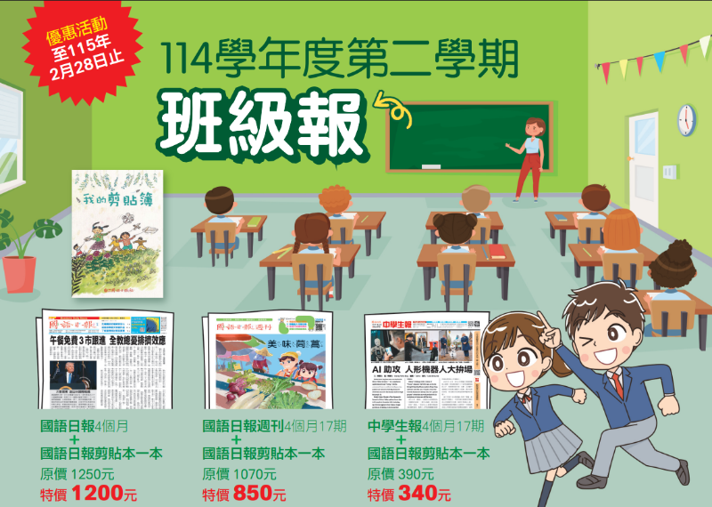本社即日起推出「114-2學期班級報」優惠訂閱專案,此案訂閱期間為4個月。