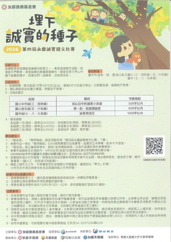 第四屆永慶誠實徵文比賽