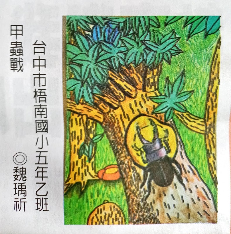 | 標題 | 賀!五年乙班魏瑀祈小朋友作品〈甲蟲戰〉榮獲《中華日報》刊登! |