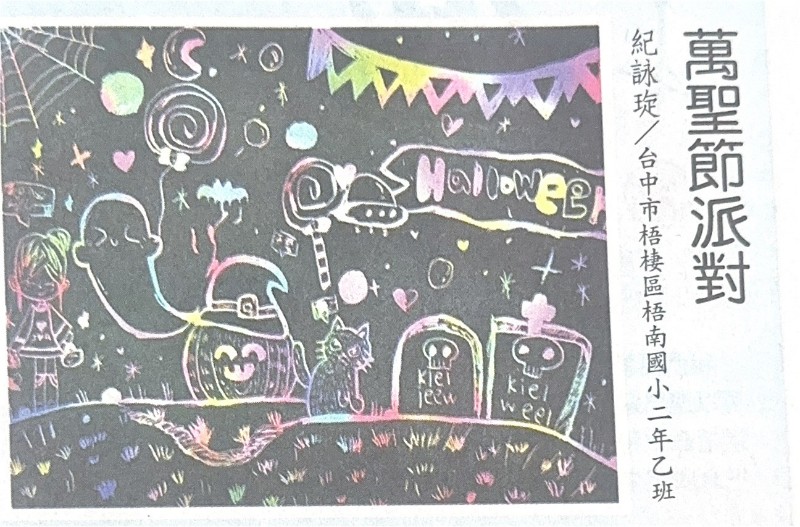 賀!二年乙班紀詠琁小朋友繪畫作品<聖誕節派對>榮獲《人間福報》刊登!