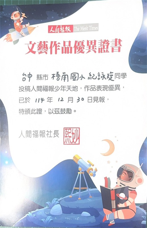 作品刊登於114年12月30日人間福報第13版少年天地