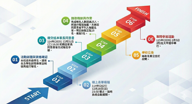 NOTE: 本線上報名表單開放至114(2025)年12月28日(日) 23:50,時間到表單自動關閉。紙本同意書收件截止日為114(2025)年12月31日(三) 16:00,請留意。