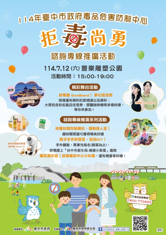114年臺中市政府毒品危害防制中心「拒毒尚勇」諮詢專線推廣活動 |