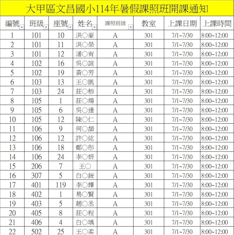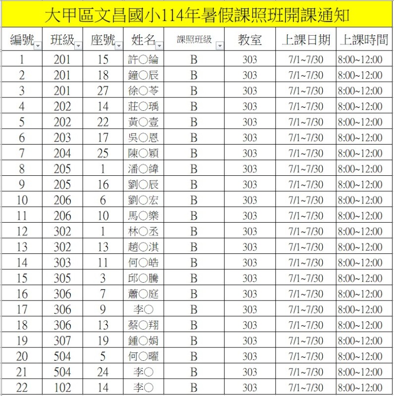 114年暑假課照班名單,詳見訊息內容。
