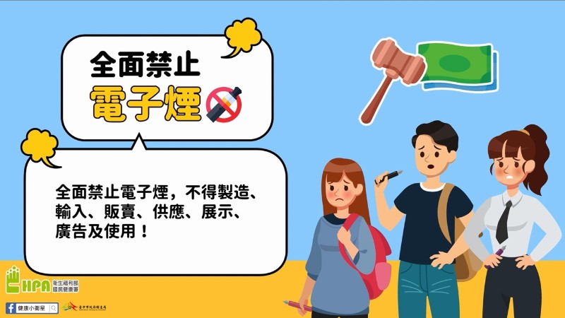 一、菸害防制法新法上路「全面禁止使用電子煙及未經審核之加熱菸,違者最高罰新臺幣1萬元」臺中市政府衛生局提醒您。