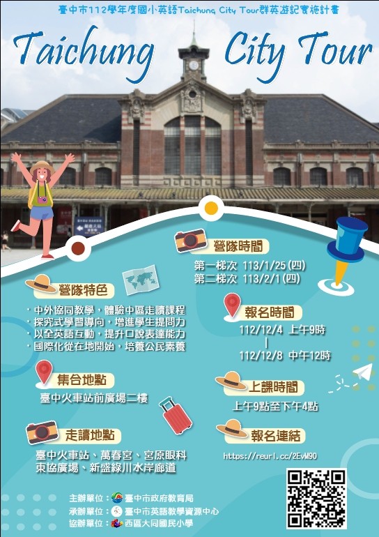 | 標題 | 轉知:本市112學年度國小英語寒假Taichung City Tour群英遊記實施計畫及宣傳海報,請參閱! |