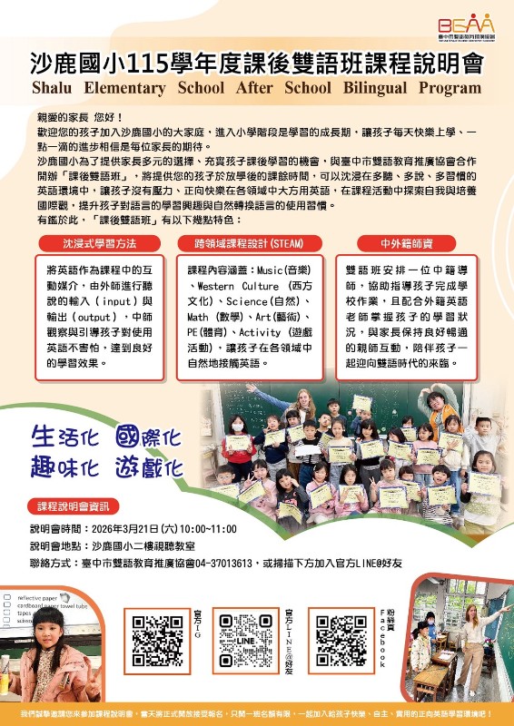 | 標題 | 115學年度新生家長請留意《雙語課後照顧班說明會》來囉 |