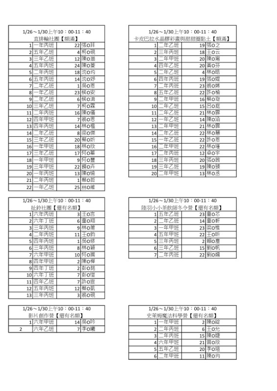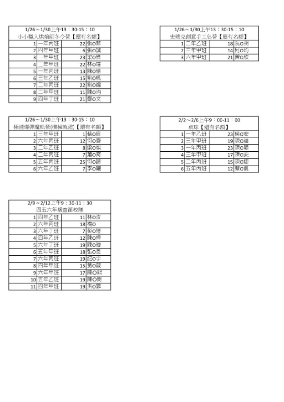 | 標題 | 文光國小114學年度(115年度)寒假社團錄取名單 |