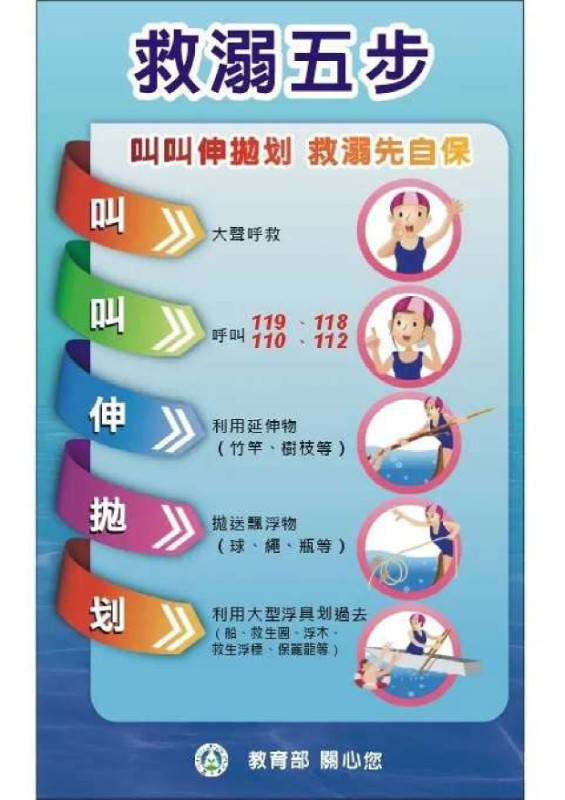 每年夏季民眾從事水域遊憩活動因疏忽、不諳水性或違規前往危險水域從事水上活動,而發生意外事故者時有所聞,為避免類似不幸事件發生、提升水域遊憩安全,相關宣導標語如下: (一)戲水場域要慎選,夏日出遊保安全!臺中市11處主要危險水域地點查詢網址(https://www.tourism.taichung.gov.tw/2674532/post)。 (二)危險水域易發生溺水意外事故,請民眾切勿前往危險水域活動以保自身安全,不聽勸導者得由水域主管機關依法裁處「1萬元以上5萬元以下罰鍰」。 (三)民眾戲水如發生意外,務必謹記救溺五步「叫叫伸拋划」及防溺十招,詳情請見內政部消防署消防防災館(網站:https://www.tfdp.com.tw/cht/index.php?code=list&flag=detail&ids=62&article_id=195)