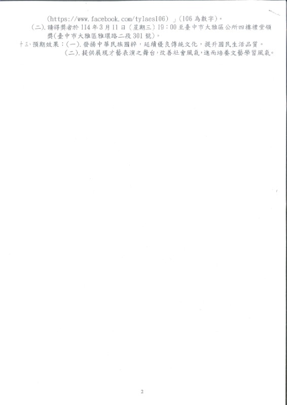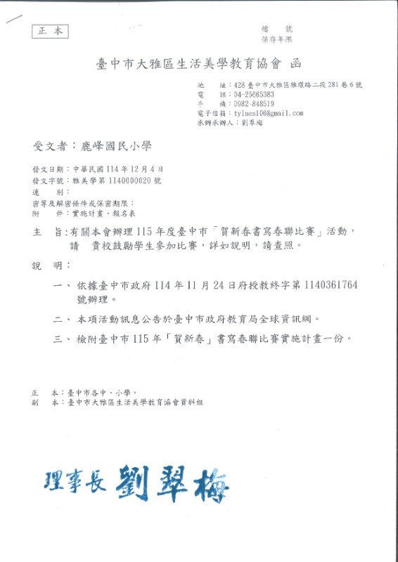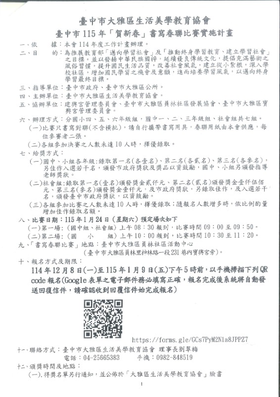 115年度臺中市大雅區生活美學教育協會-春聯比賽訊息