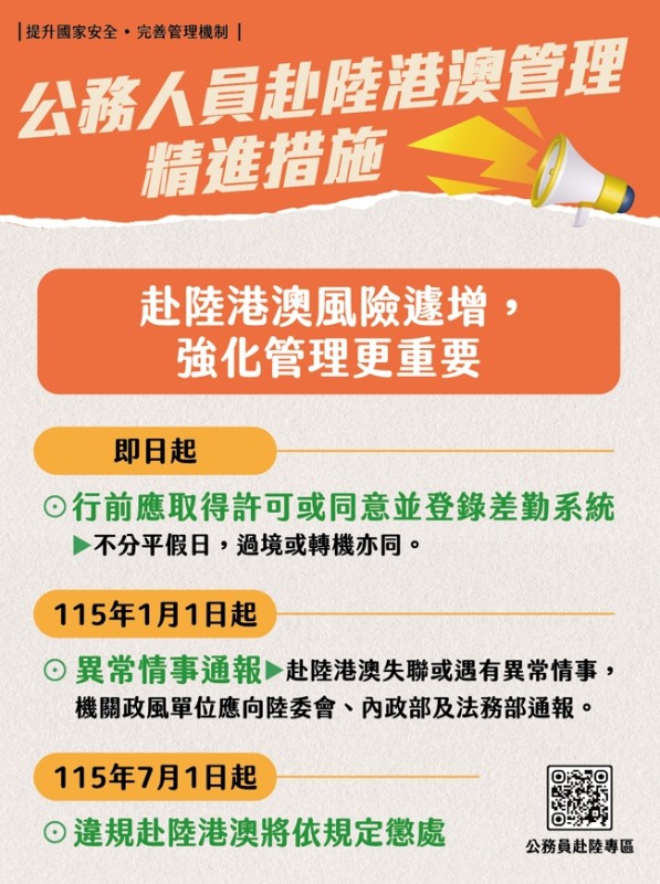 「強化公務員赴陸港澳管理機制精進措施」宣導海報