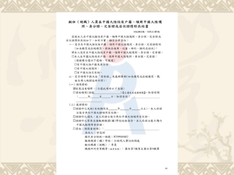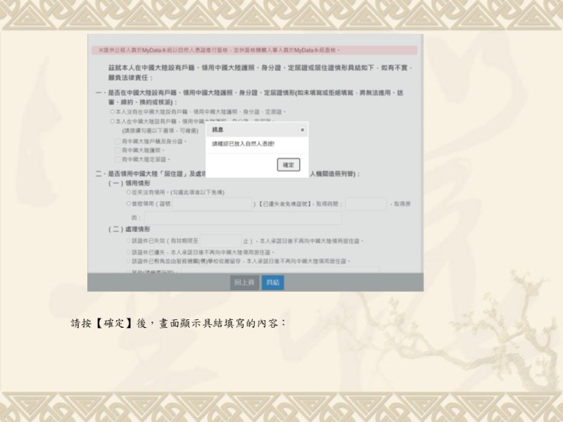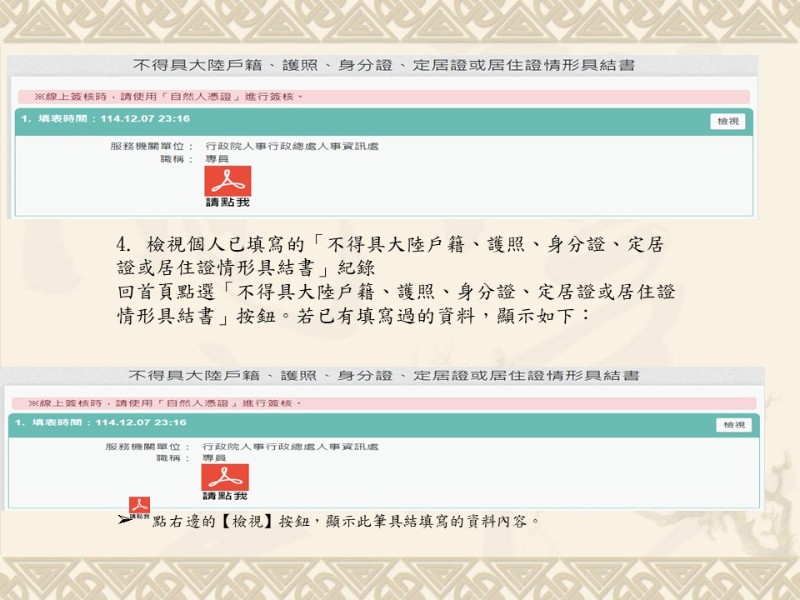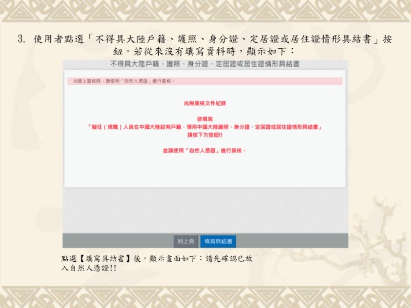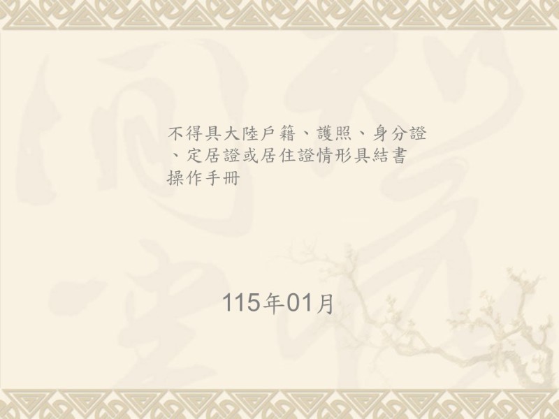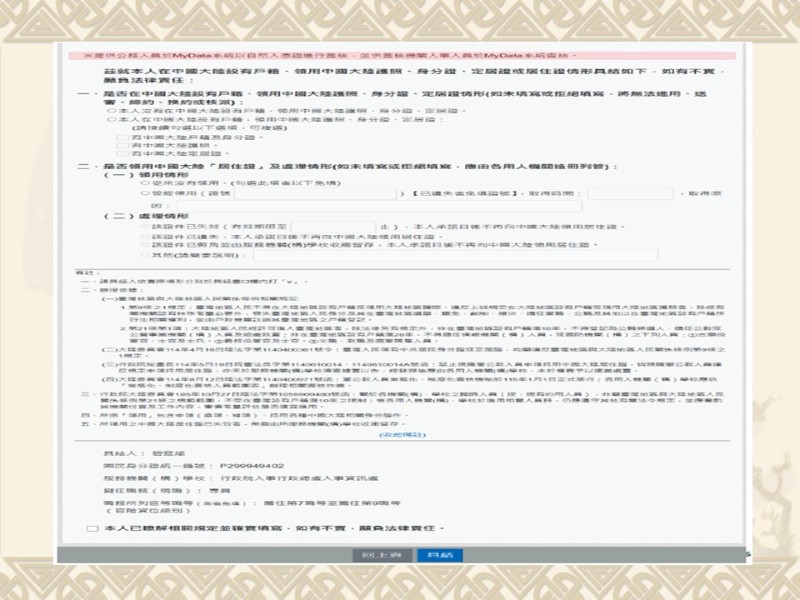 不得具大陸戶籍、護照、身分證、定居證或居住證情形具結書 操作手冊