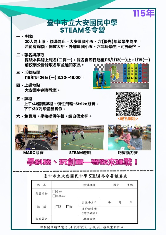 大安國中「115年STEAM冬令營」活動資訊