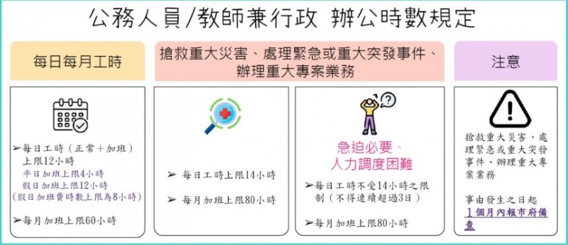 二、辦公時數規定(含兼行政教師):如下圖 三、覈實加班、適時關懷