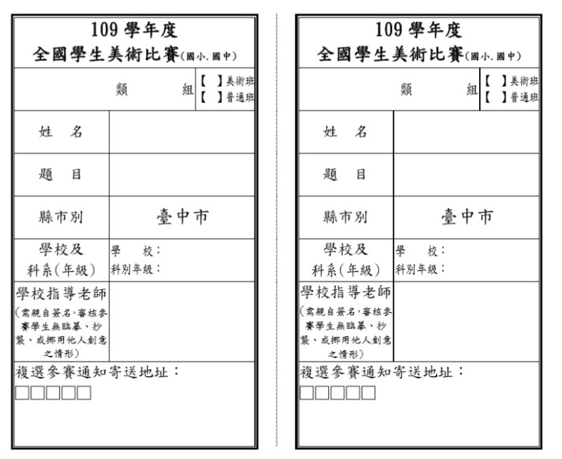 | 標題 | 109 學年度全國學生美術比賽臺中市初賽實施計畫 |