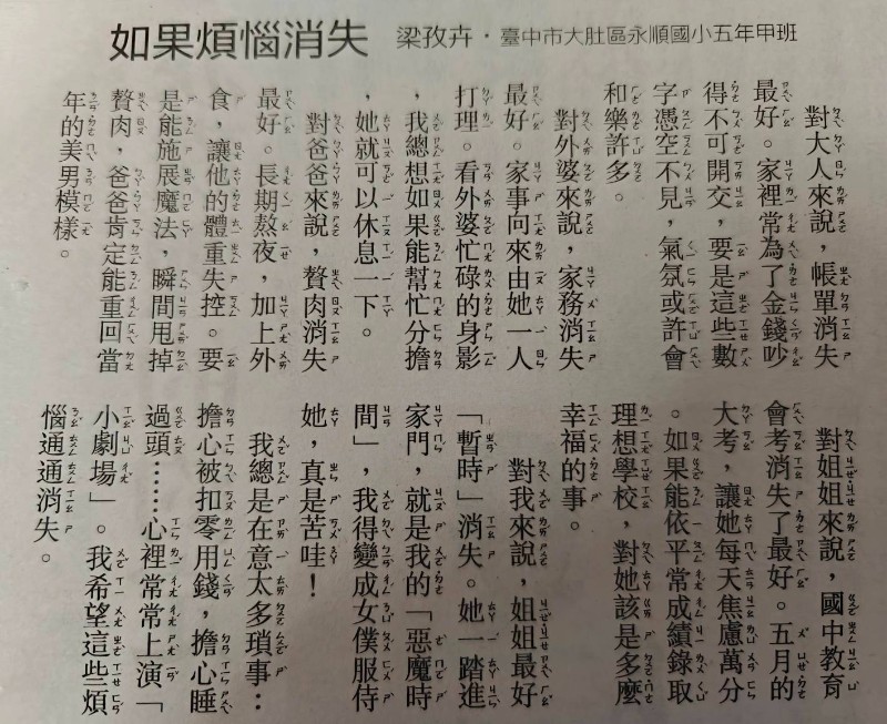 賀!五年甲班 梁孜卉 作品<如果煩惱消失> 榮獲115.2.6國語日報 刊登