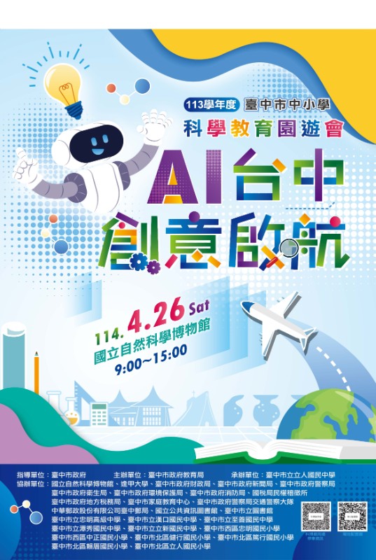 轉知:臺中市政府教育局訂於114年4月26日(星期六)辦理「113學年度臺中市中小學科學教育園遊會」 |