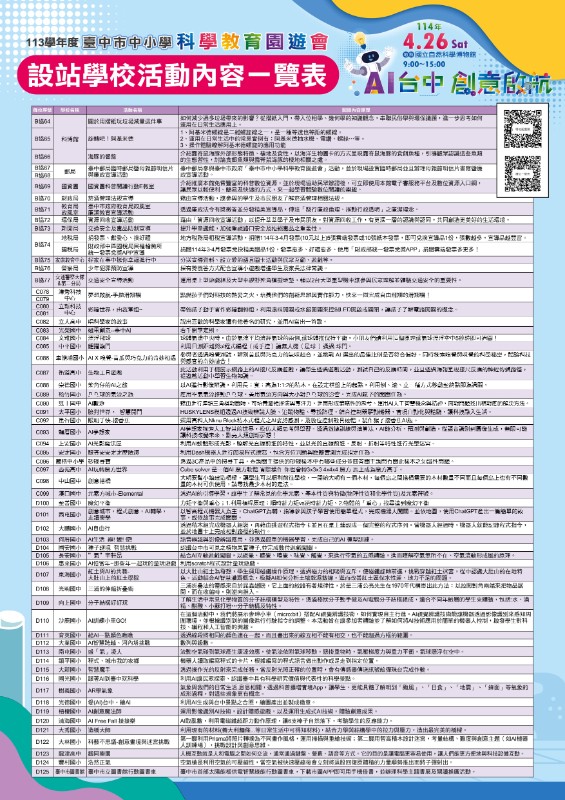 依據113學年度臺中市中小學科學教育園遊會實施計畫辦理。 |