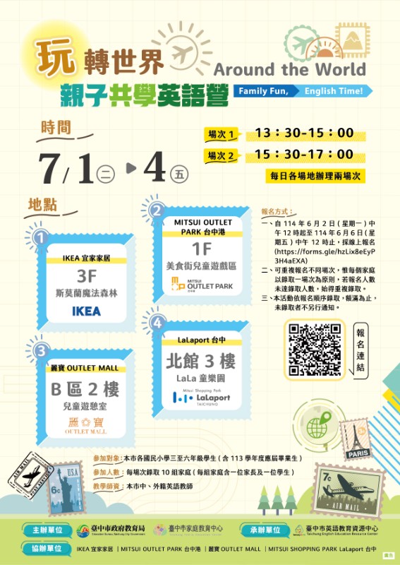 轉知:臺中市113學年度國民小學玩轉世界Around the World暑假英語營 |