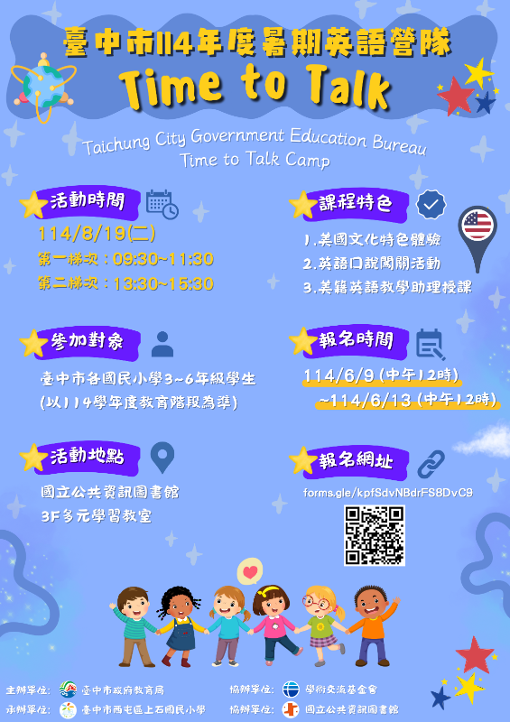 活動時間、地點:114年8月19日(星期二)假國立公共資訊圖書館3樓多元學習教室辦理,當天活動將採2梯次方式辦理。 |