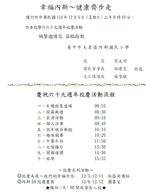 12月6日(六)校慶運動會,歡迎家長一同參與!
