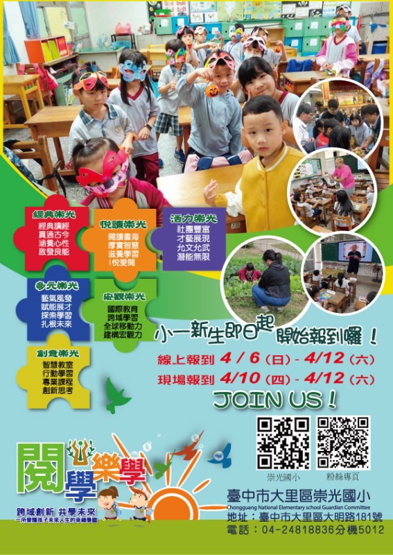 臺中市大里區崇光國民小學新生入學通知單 *附件:入學報名單一份*