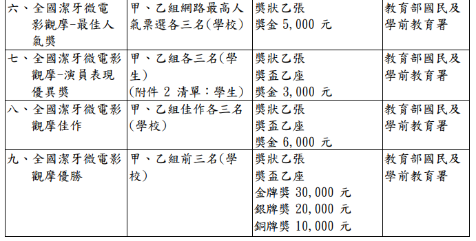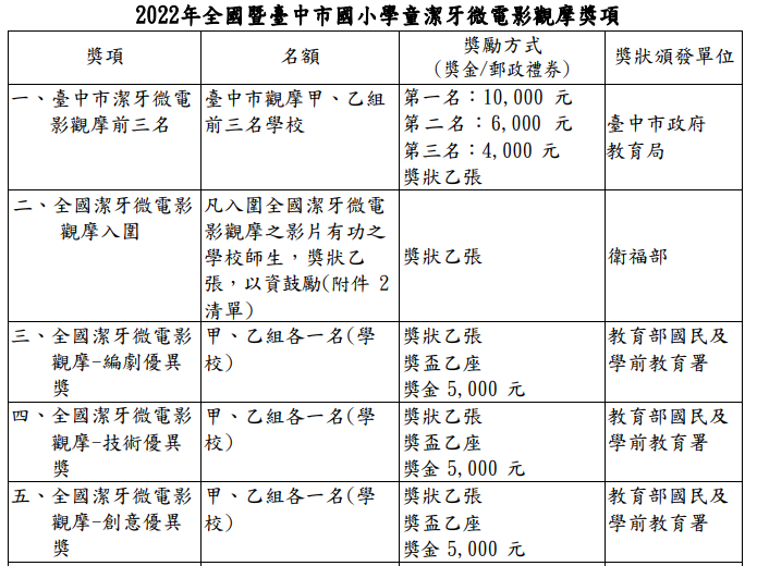| 標題 | 轉知「臺中市國小學童潔牙微電影比賽辦法 」鼓勵校內師生踴躍報名參加 |