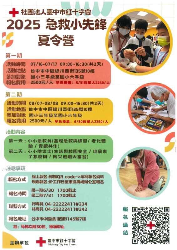 轉知:社團法人臺灣市紅十字會-2025急救小先鋒夏令營