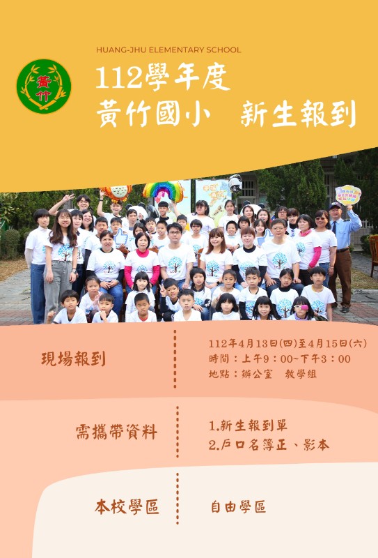 | 標題 | 112學年度 黃竹國小 新生報到 |