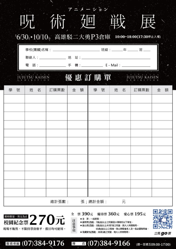 轉知—聯合數位文創訂於112年6月30日~112年10月10日於高雄市 駁二藝術特區 大勇P3倉庫舉辦「咒術迴戰展」高雄站 |