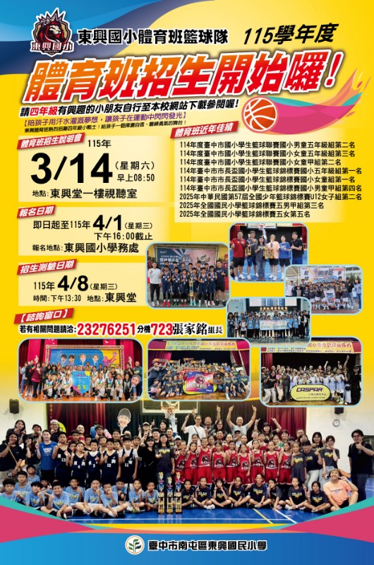 轉知-臺中市南屯區東興國民小學115學年度體育班招生簡章