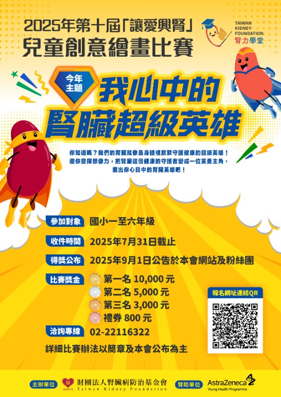 財團法人腎臟病防治基金會於114年6月至7月辦理「讓愛興腎」兒童創意繪畫比賽
